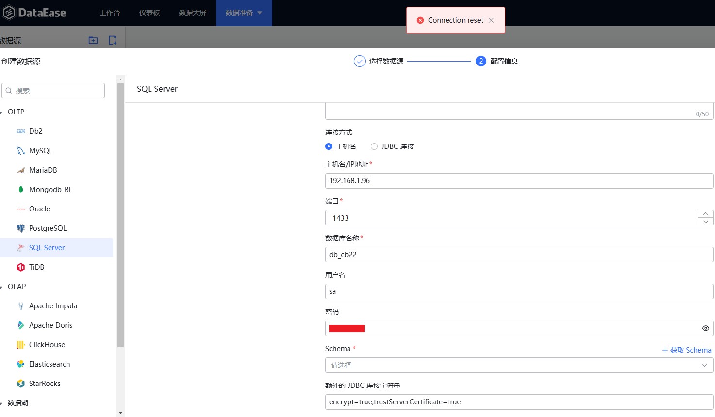 您参考一下这个文档,DataEase v2 数据源连接失败的各种情况及解决方案 - FIT2CLOUD 知识库