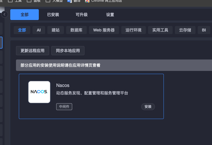 我刚安装1Panel,为什么应用商城 看不到Nacos呢?