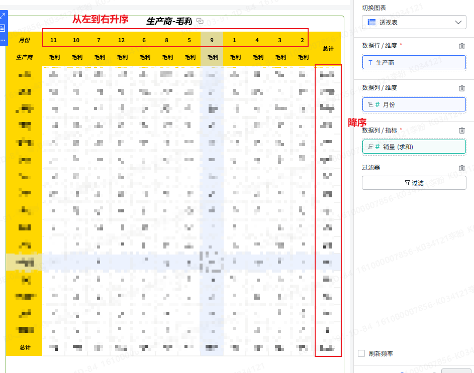 指标列的降序会导致月份升序被打乱,请问该如何配置