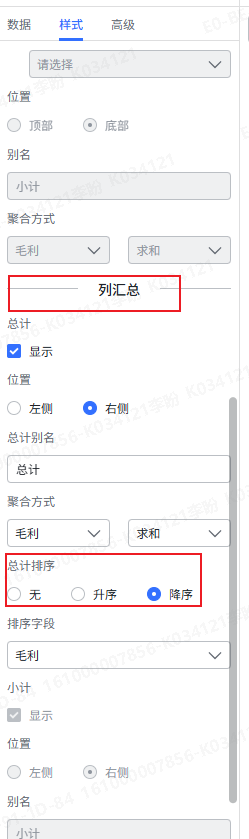 解决了,在列汇总中设置才打到效果