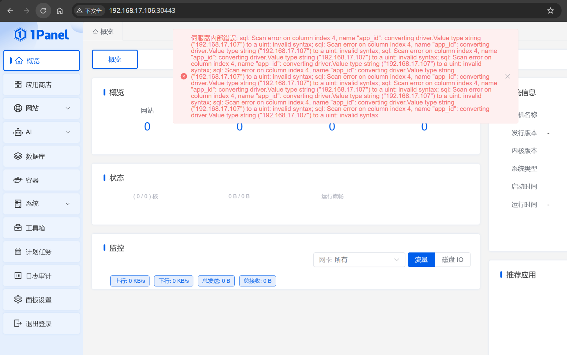 反馈问题【BUG】请附带以下信息 1Panel 版本:最新 操作系统(设备): 斐讯N1-debian 关键截图: