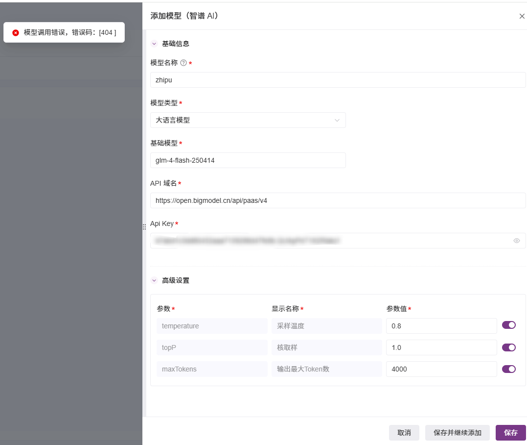 添加模型错误