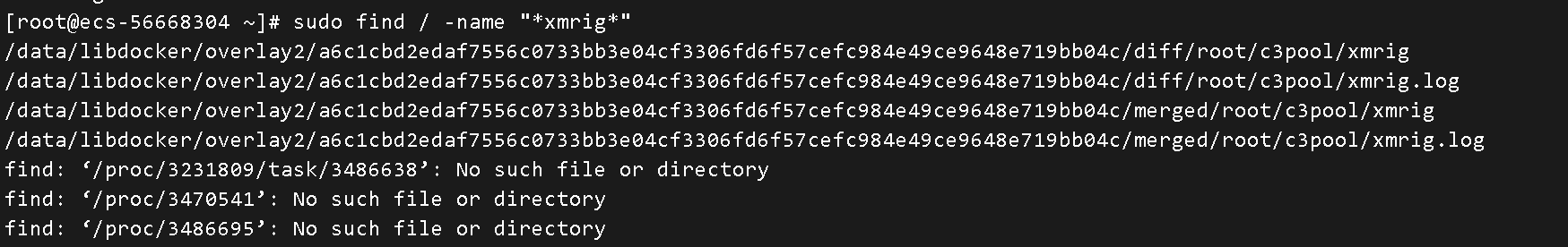 [root@ecs-56668304 ~]# sudo find / -name “xmrig”