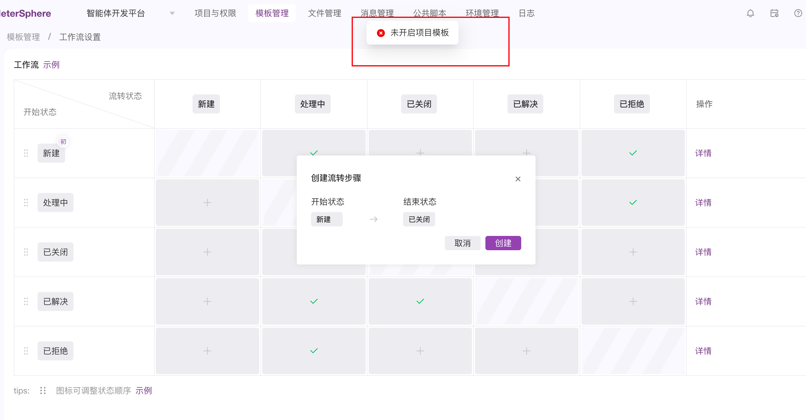 可以从 模版管理 缺陷工作流设置, 更新工作流窗台流转