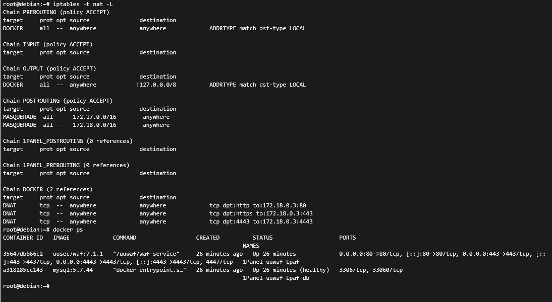 如图,pve宿主机172.16.16.2可以访问1panel中docker映射的uuwaf管理端口4443,但是其他主机就只有ack无回复,tcpdump监听1panel-network的桥接网卡未接收到任何请求,pve,lxc防火墙均关闭