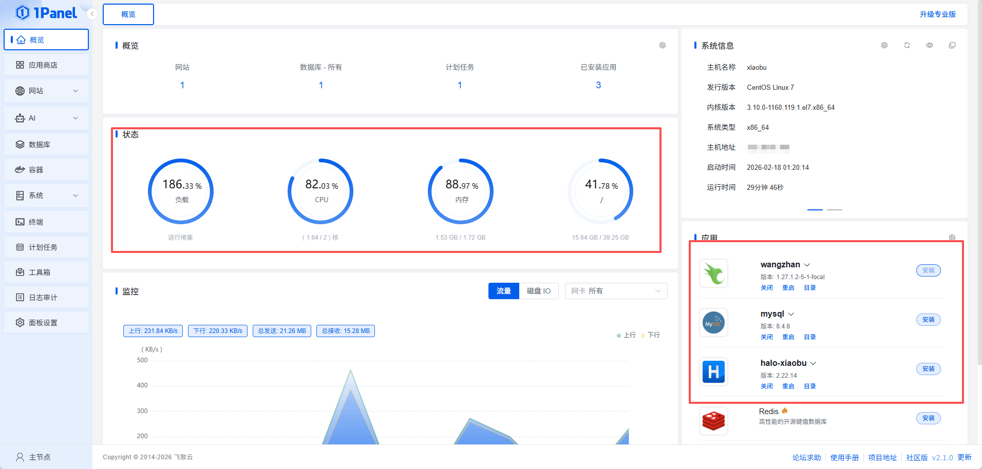 1Panel 版本:v2.1.0