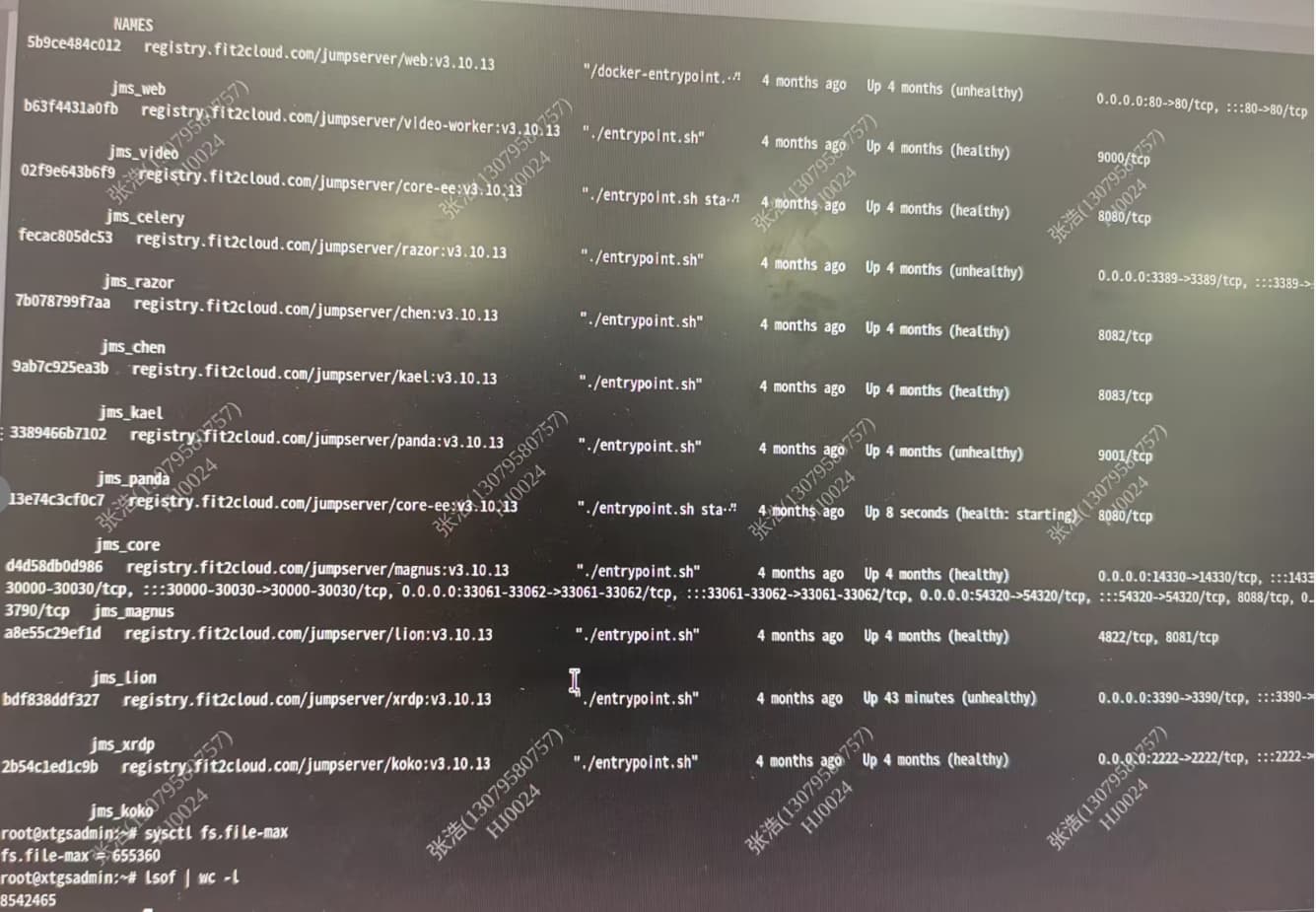 lsof | wc -l定位文件句柄占用情况。 - 确认 JumpServer 各组件(如 koko、guacamole)是否存在连接泄漏,查看对应日志