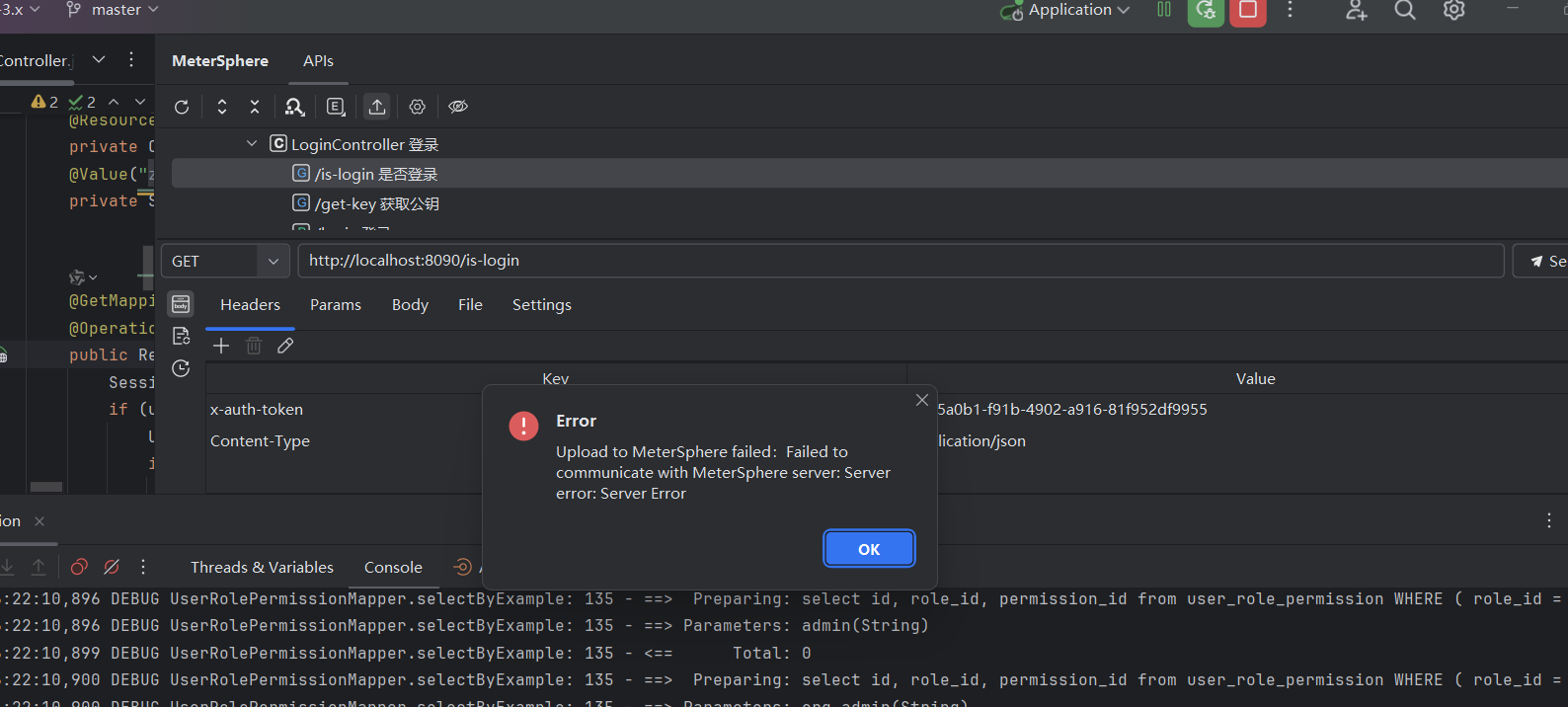 java.lang.RuntimeException: Failed to communicate with MeterSphere server: Server error: Server Error