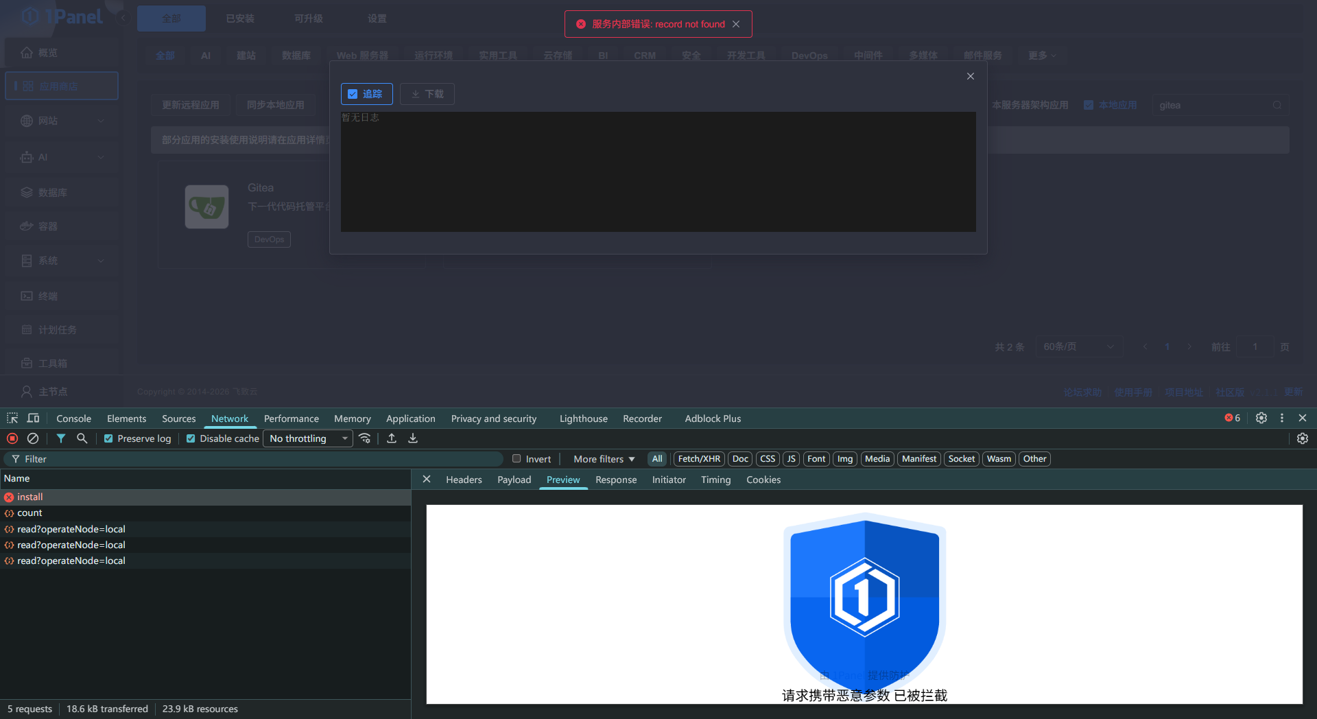 1Panel 版本:2.1.1