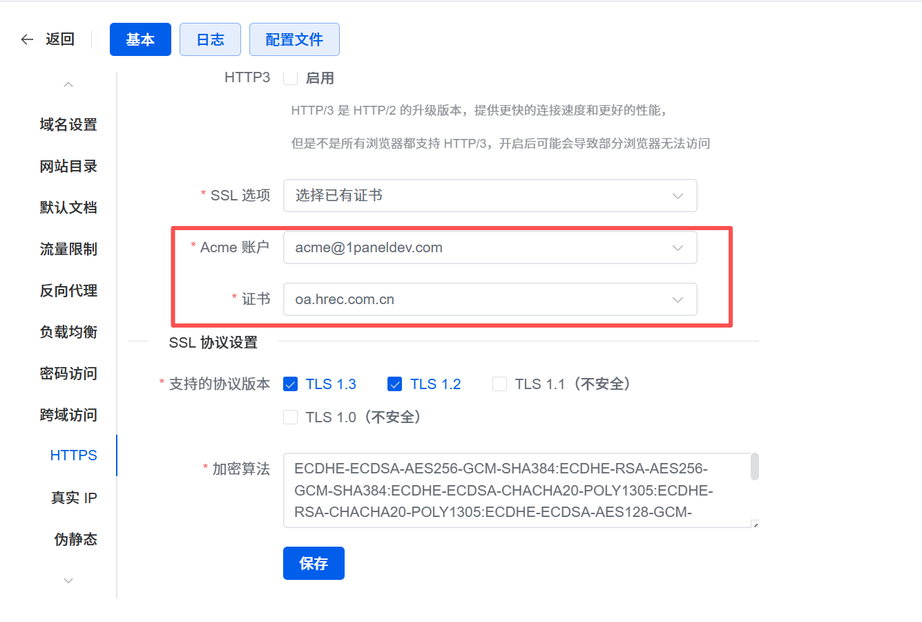 设置https后500,删除证书重新申请,同样。 端口默认80/443,未设置其他反代