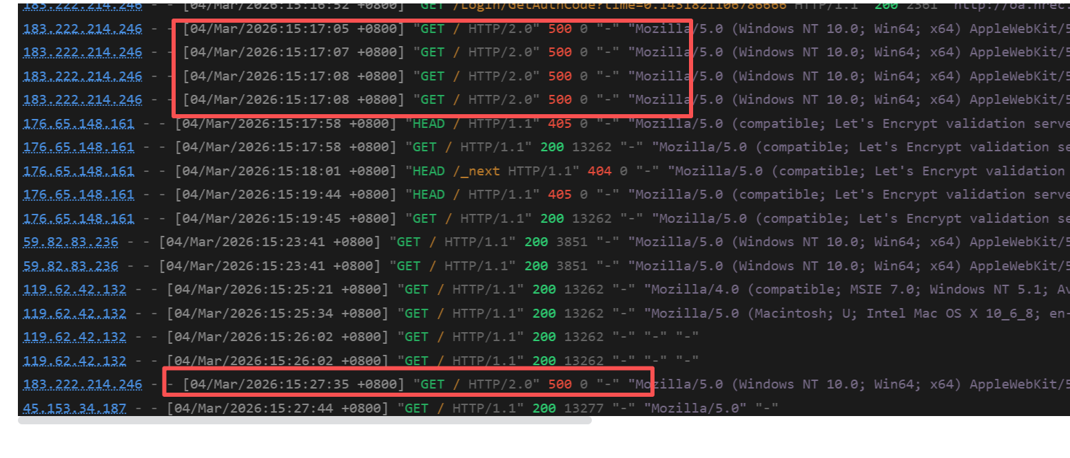 80端口可以正常访问,https 500。 站点的日志能捕捉到访问https500/不带https就是正常的日志。怀疑跟Let’s Encrypt的证书与openresty的设置有点关系