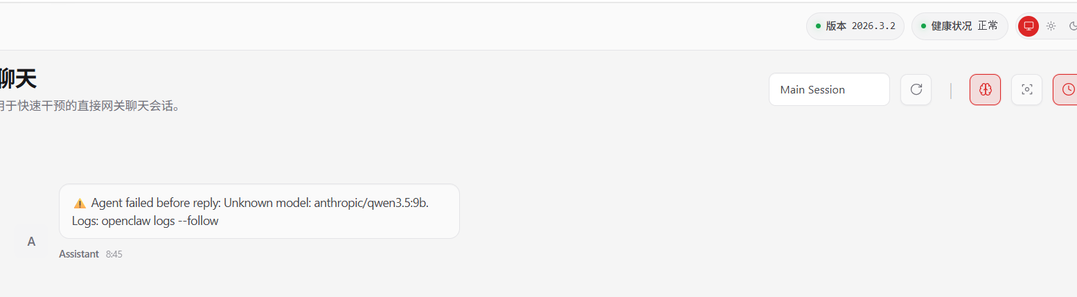 Agent failed before reply: Unknown model: anthropic/qwen3.5:9b.