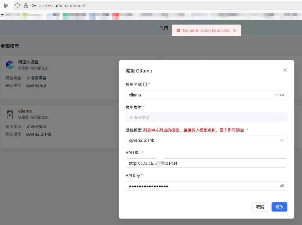 用域名访问maxkb会出显不权限,但直播用ip是好的。