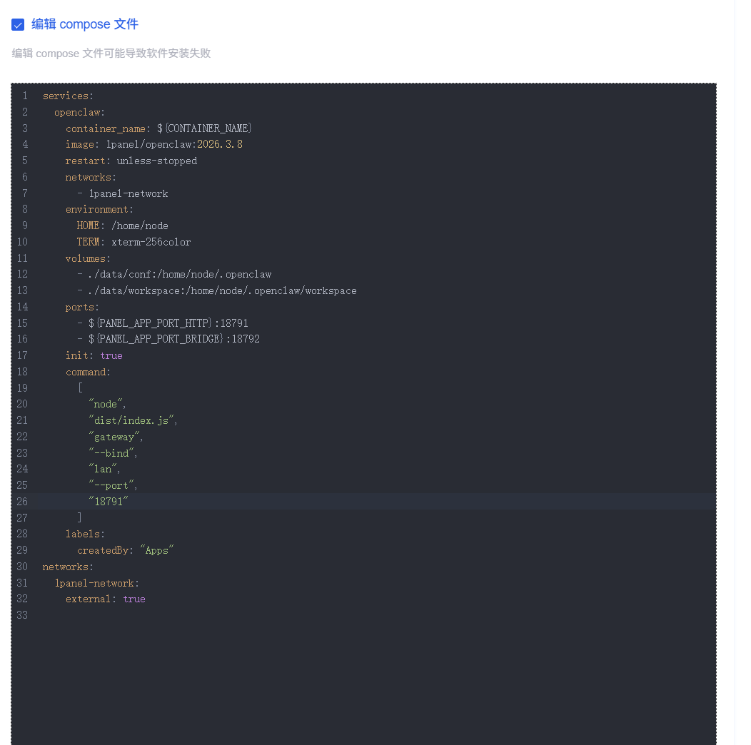 2026/03/10 11:36:52 安装应用 [OpenClaw YT] 失败: Usage: docker compose [OPTIONS] COMMAND