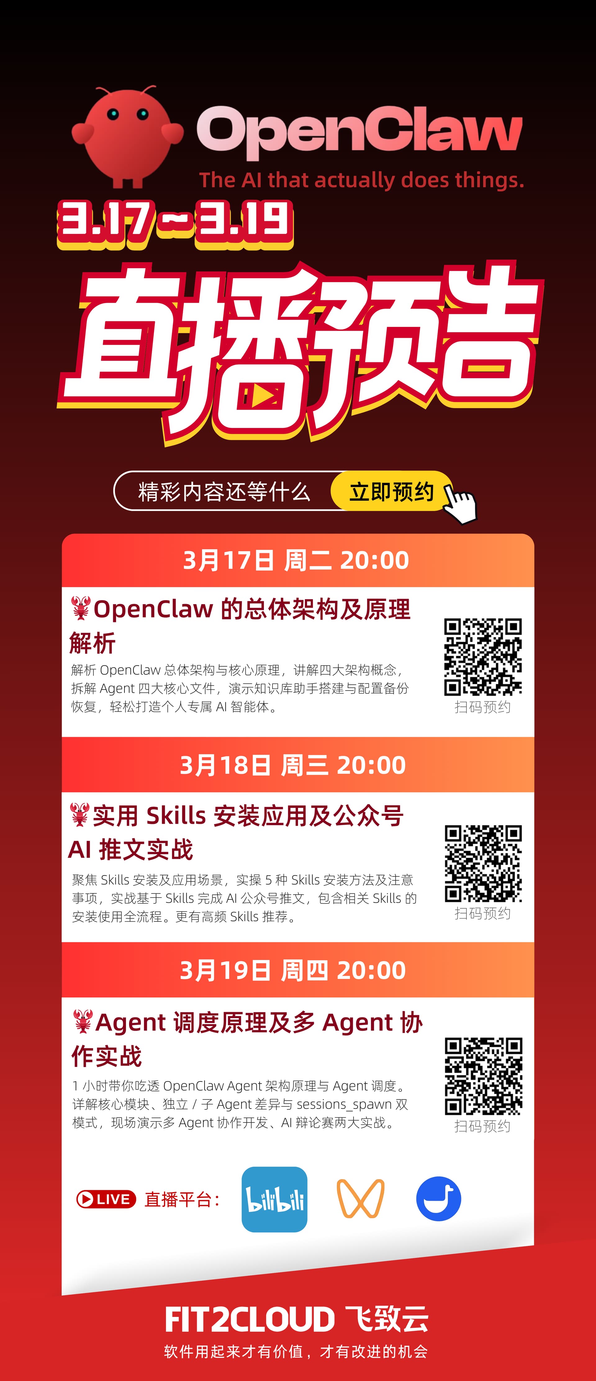 OpenClaw 3.17-3.19 三连播,每晚 20:00,OpenClaw 干货不断,等你来“取经”![]()