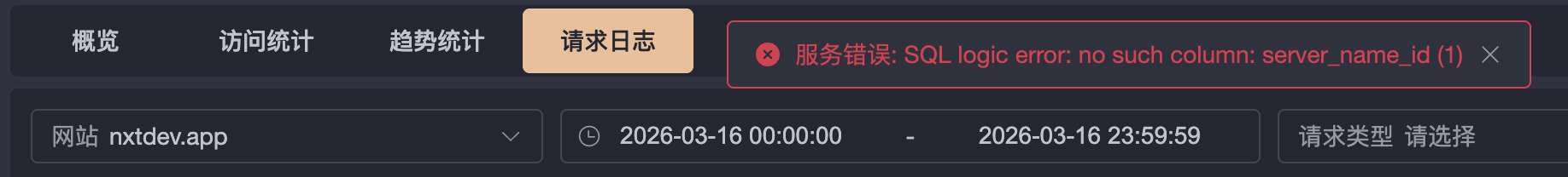 升級専業版後打開網站監控提示 服务错误: 数据库不存在
