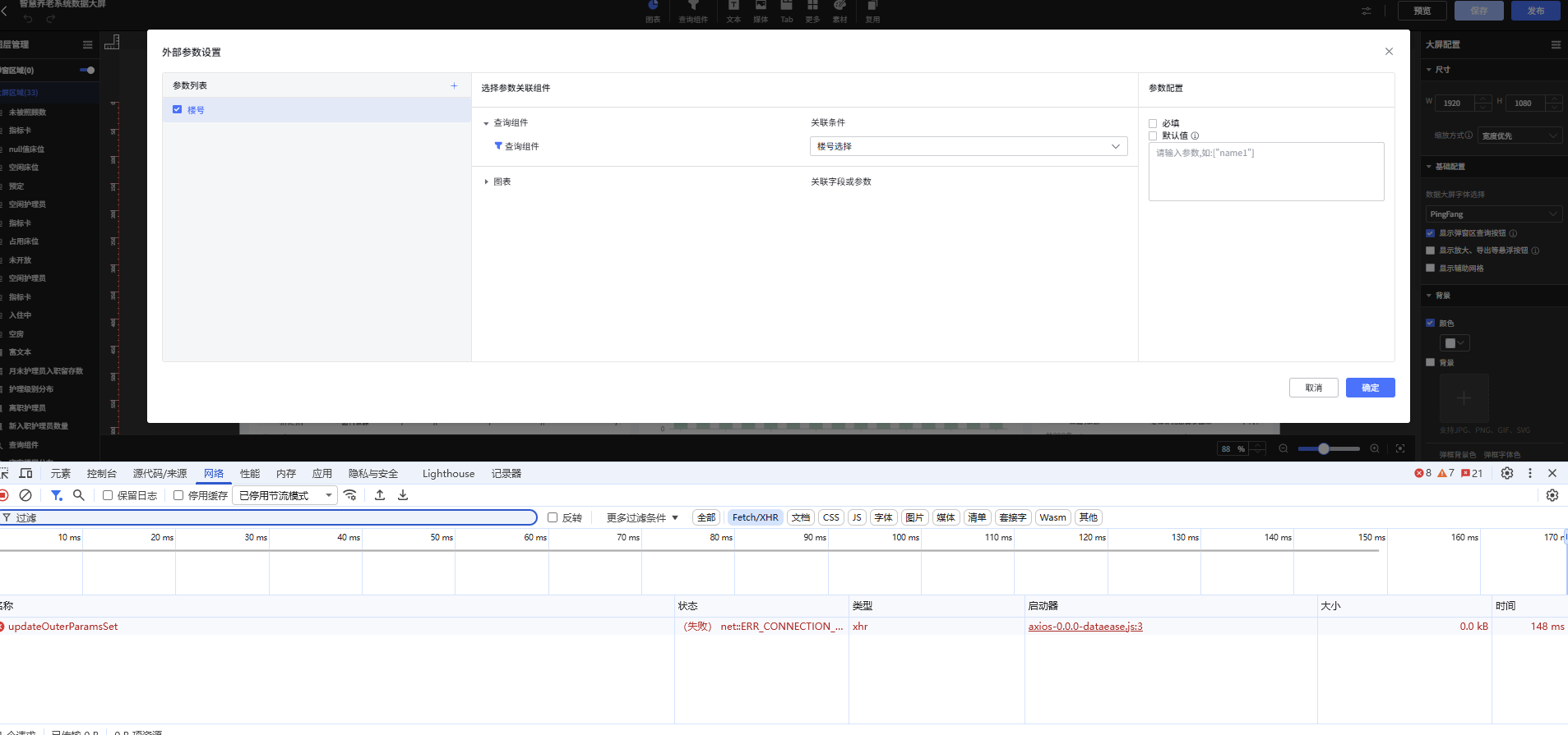 版本是v2.10.18,社区版,通过1panel安装。 大屏的外部参数无法保存?点击确定就报错。这个怎么弄?