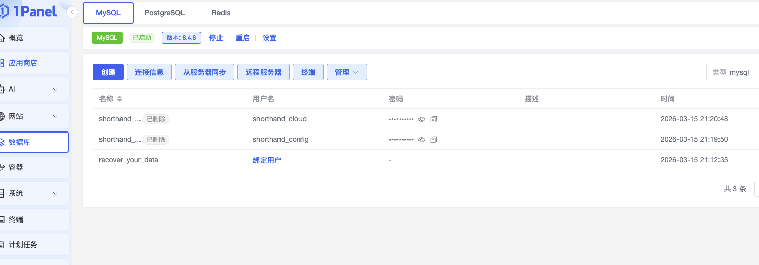 检查一下容器挂在目录对应的时间,时间是否和应用创建时间一致 /opt/1panel/apps/mysql/mysql/data