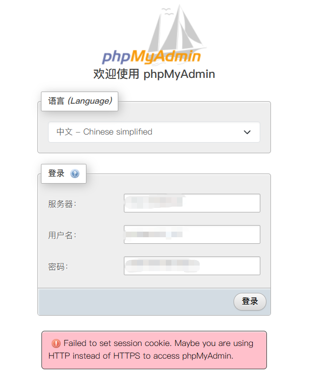 数据库登录信息都是正常的,提示下面的错误: Failed to set session cookie. Maybe you are using HTTP instead of HTTPS to access phpMyAdmin.