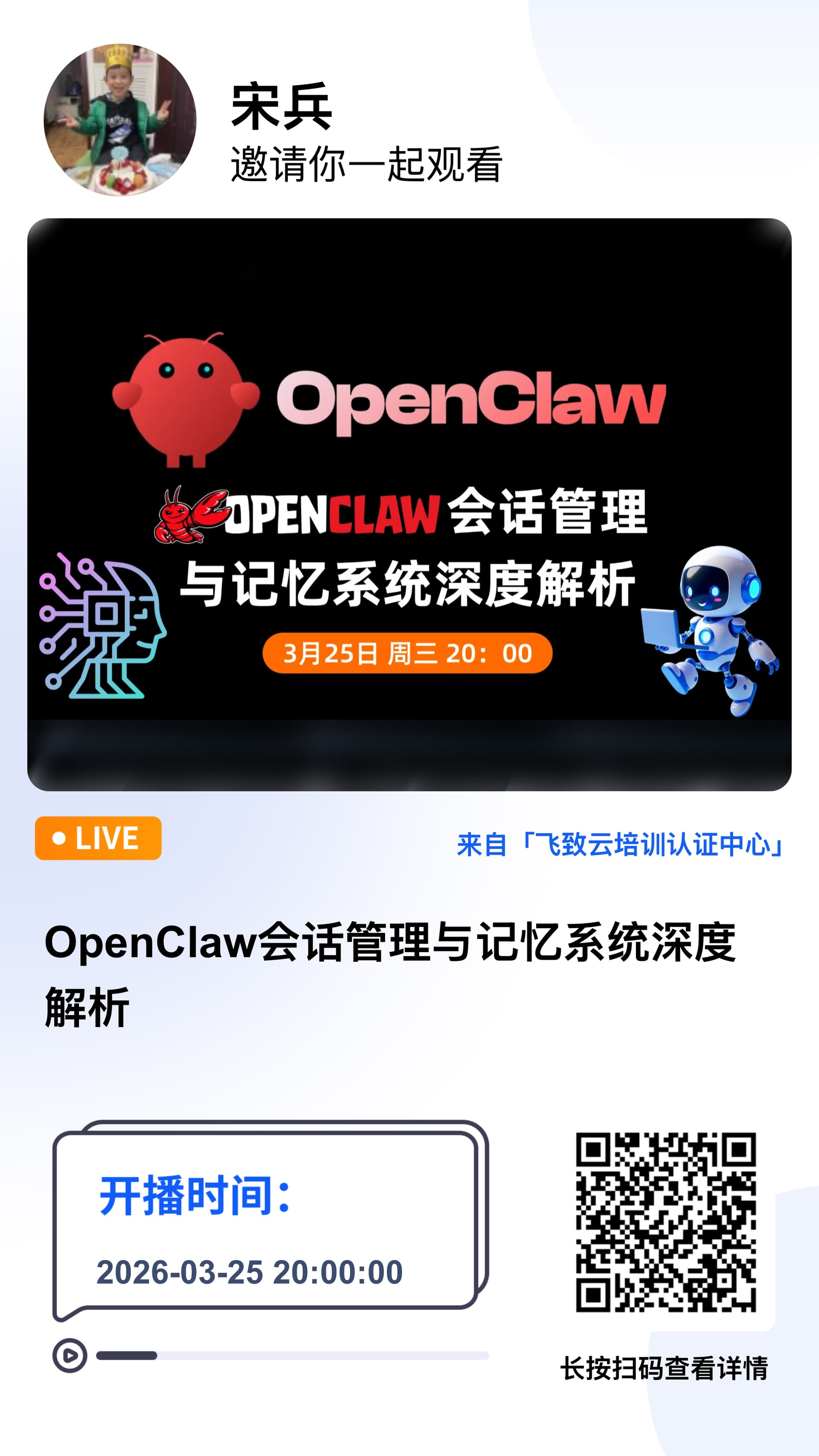 3月25日(本周三) OpenClaw 会话管理与记忆系统深度解析,干货不断,等你来“取经”