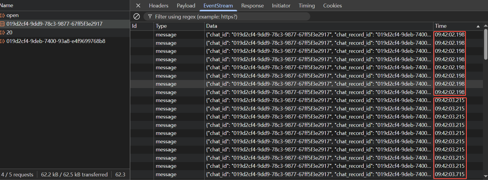 调用对话API时这里的流是一批一批给的,导致前端页面显示很割裂,渲染一段,停一下,又渲染一段,看起来不是很顺畅,能否不要有缓存,来一个流就立马给呢