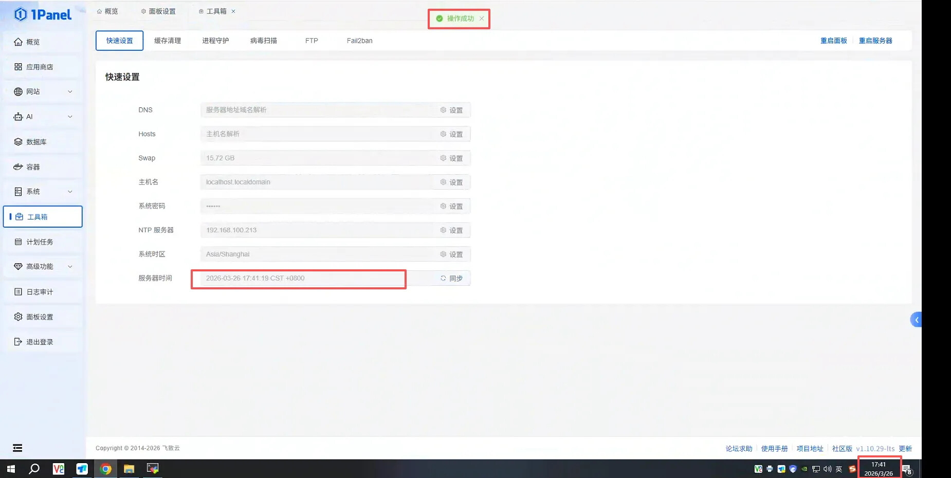 额外说明:在本次手动同步前,起初配置NTP服务器时就已经手动同步过了,当时是正常的时间是对的,而过了一段时间后服务器时间就对不上实际北京时间了,所以又得手动同步