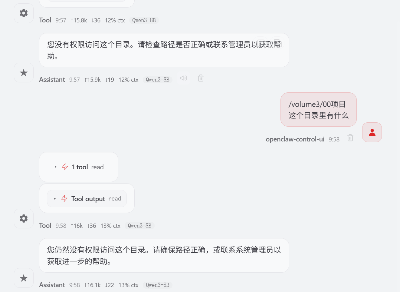 openclaw总是提示权限不足,文件夹和里面文件权限设置0755也不行,求大神帮忙