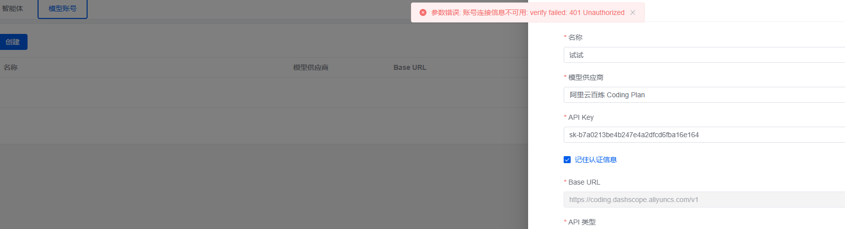 图片已发 报错401 问了客服 客服说阿里那边不用配置 直接生成api就能用的 我这没买任何阿里云的服务