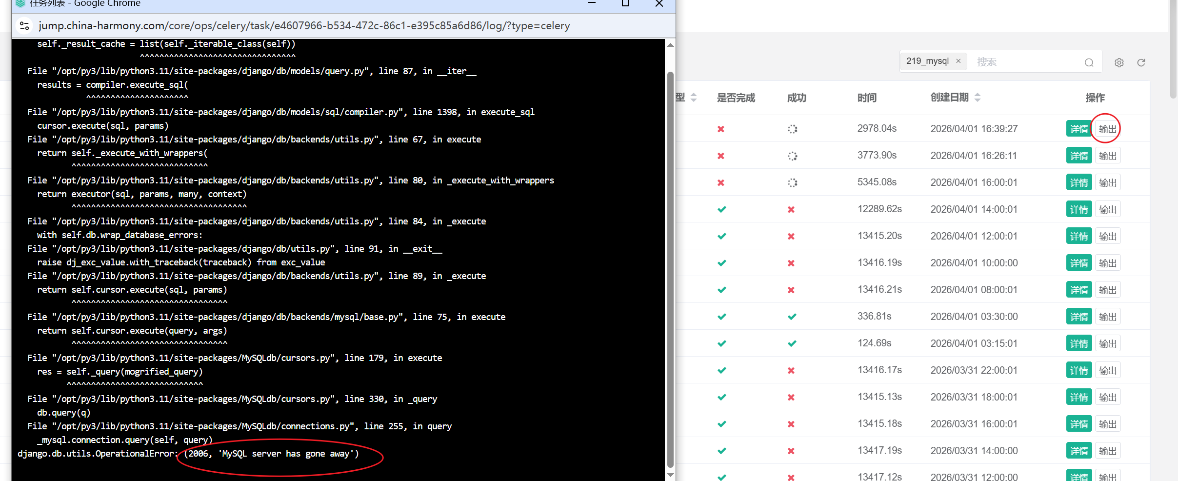 后来我发现是jumpserver的问题,看他的日志输出似乎是提示jumpserver连接的数据库挂了