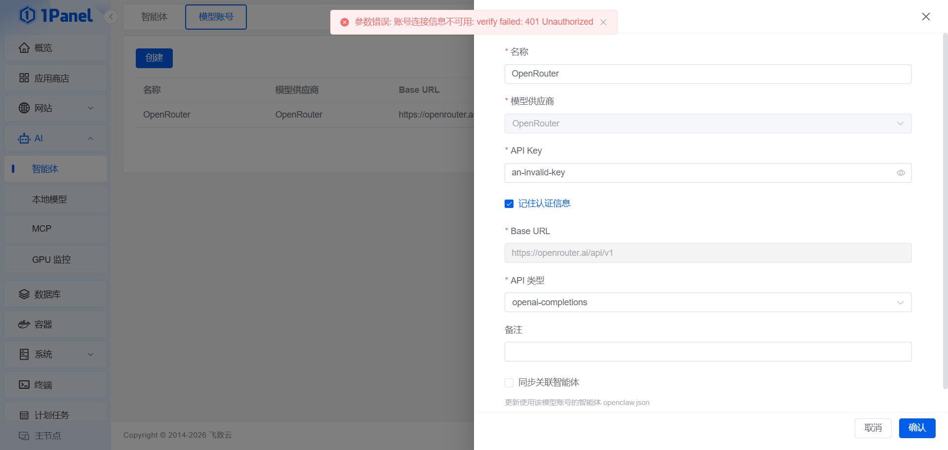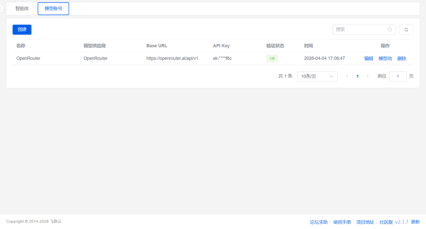 在配置模型账号时显示ok。