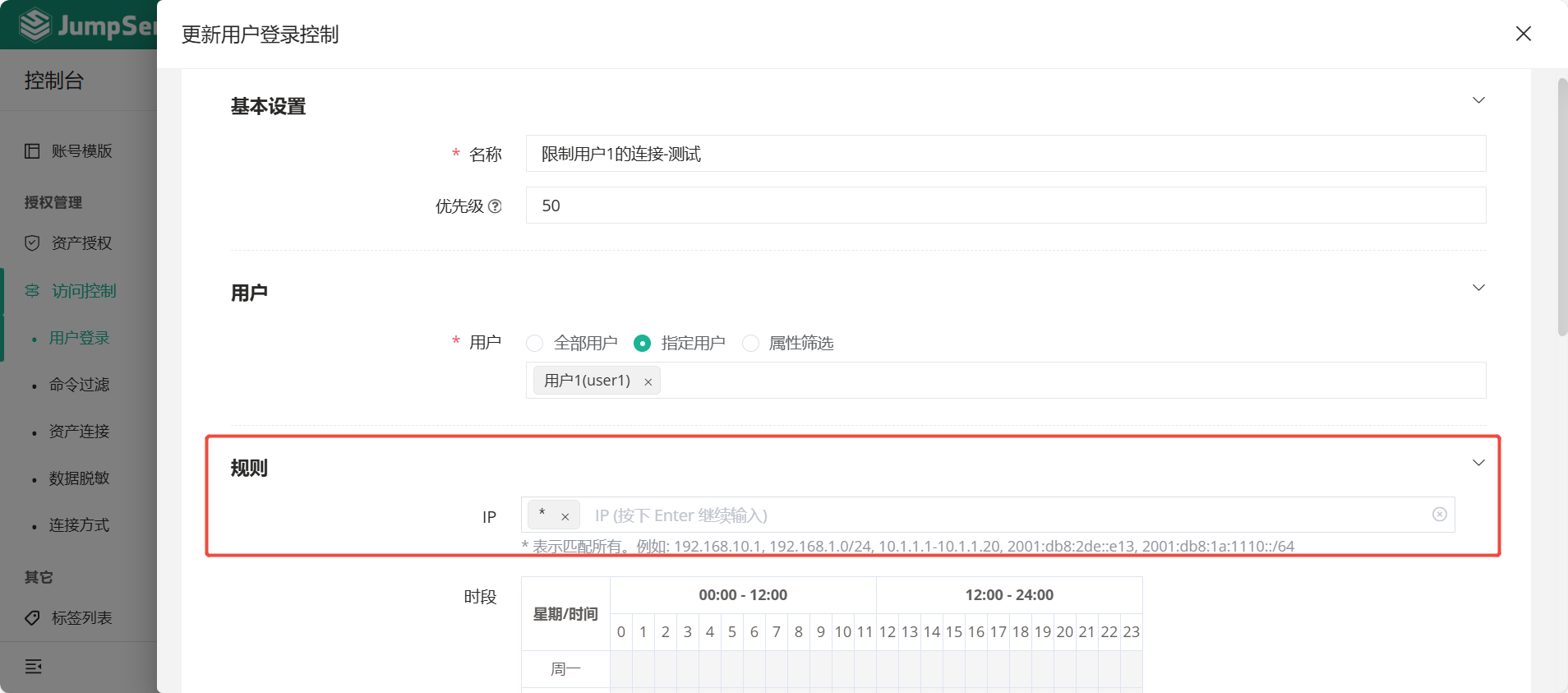 有几个问题想请教 1.jumpserver v4社区版 怎么自定义控制用户登陆时间段 2.审计台-文件传输-文件存储功能开启需要x-pack功能包吗? 3.可以单独控制用户的登录ip黑白名单,而不是全局控制吗?