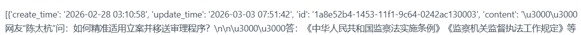 你可以输出 检索结果啊,只有检索到的文字分段内容,没有其他字段。