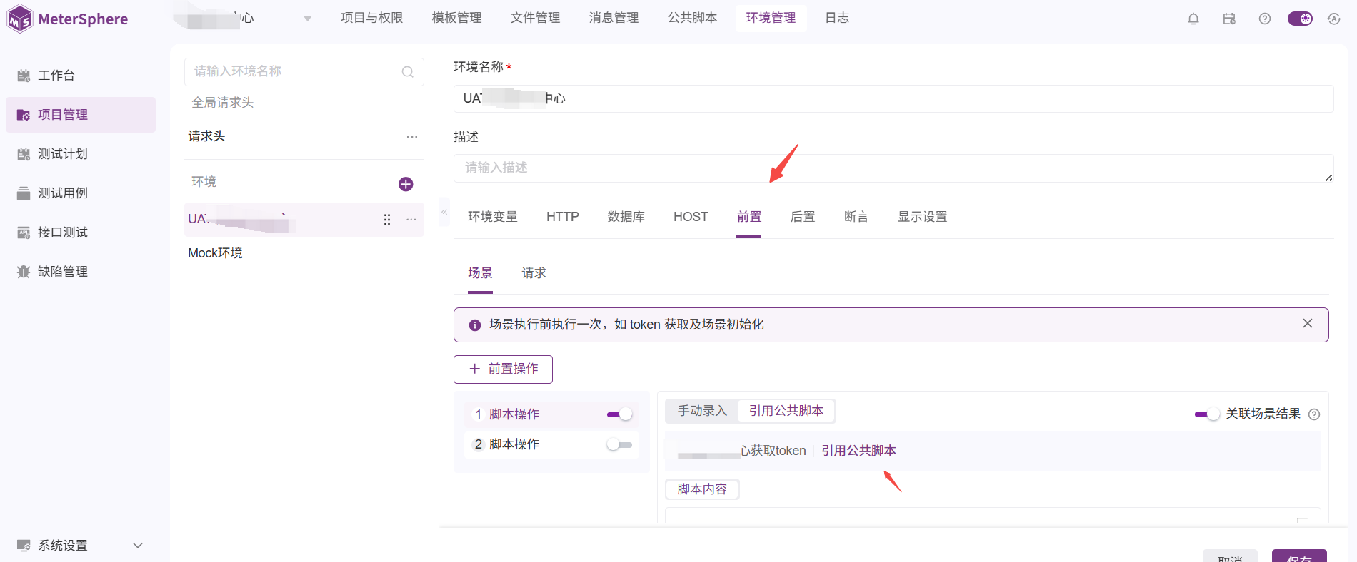 在环境管理-前置中配置了token获取的脚本,但在环境的http请求头中引用后,在接口执行时获取不到
